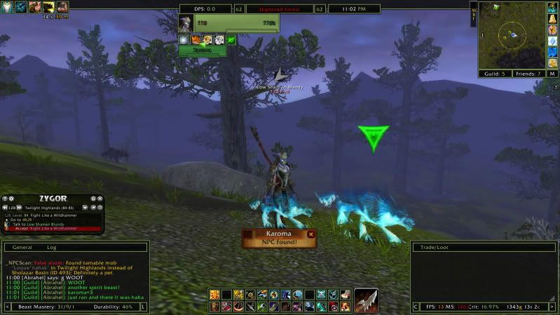 I was Really sleepy last night and my photobucket didn't want to work right at all so I didn't have a chance to post this last night. But now I only need 3 of the Spirit Beasts because last night while I was questing in Twilight Highlands I ran smack into Karoma and of course I tamed him as well :)
