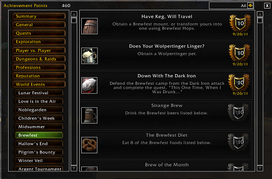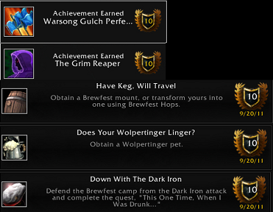 LOVE to earn achievements so i figured maybe every Monday or so I'll post the achievements I have earned from Mon-Sun of each week. And I can say now before you even look that 90% of my Priests Achievements were all from 9/23/11.